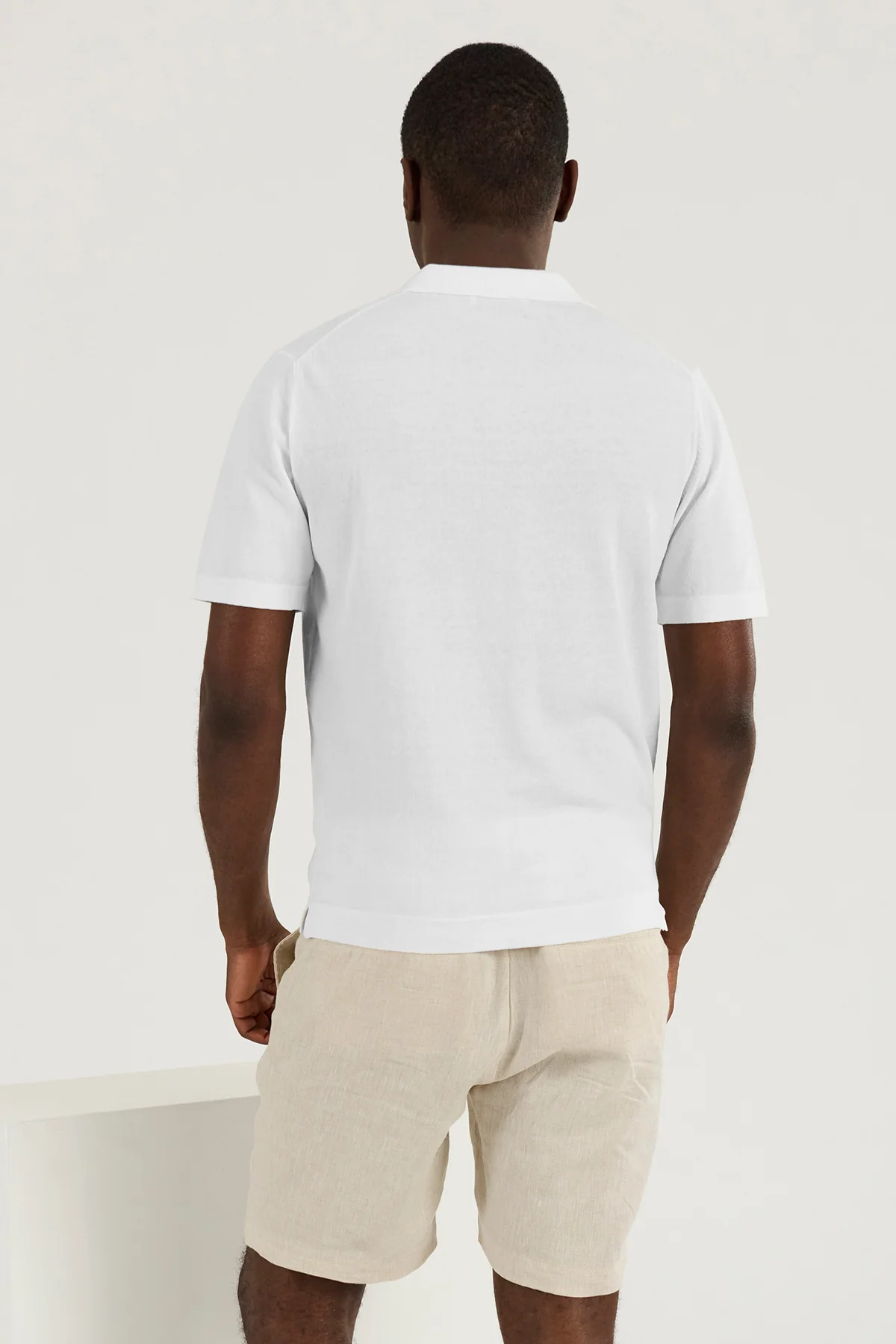 Realizzato in fresco cotone Crepe, questa polo scollo a V a manica corta ha colori brillanti ed un uso duraturo nel tempo. Leggero, fresco e traspirante, la vestibilità è regolare e confortevole. Fondo dritto e spacchetti laterali.