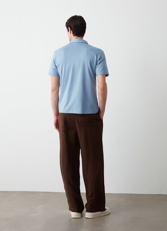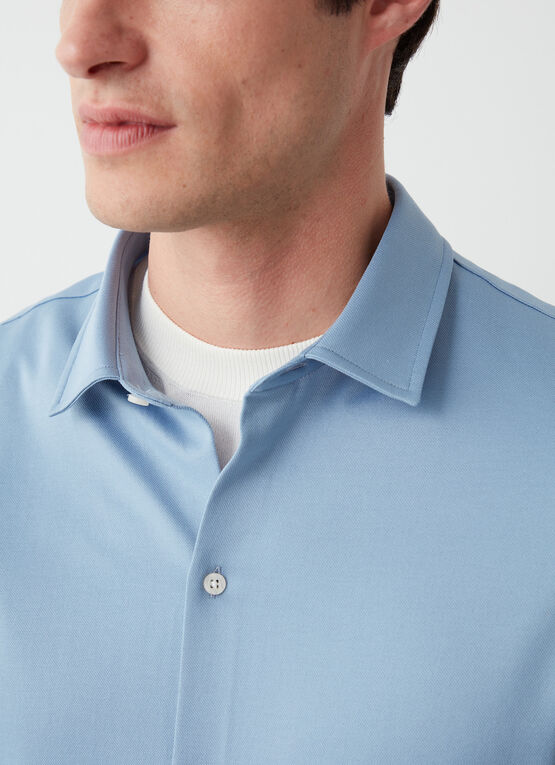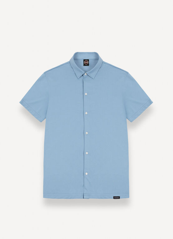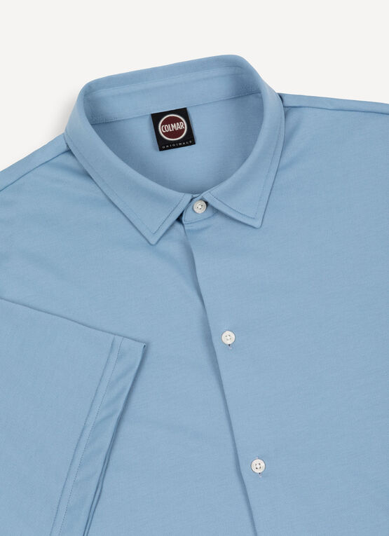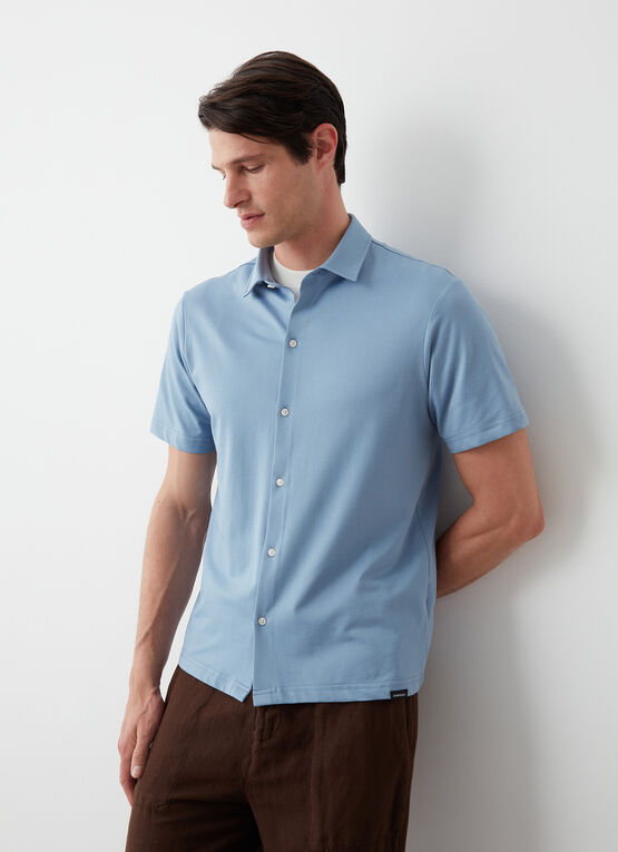 Camicia da uomo a maniche corte realizzata in piqué elasticizzato misto nylon e cotone. Un capo dall'anima elegante rivisitato in chiave sportiva, ideale anche da indossare aperto.