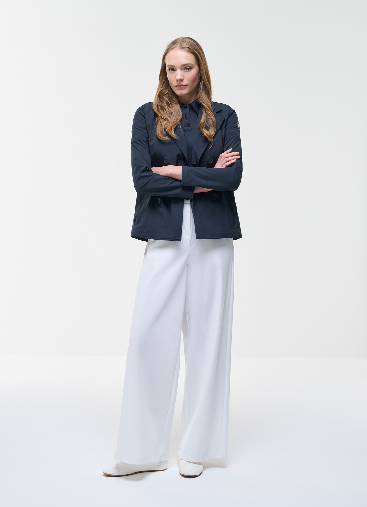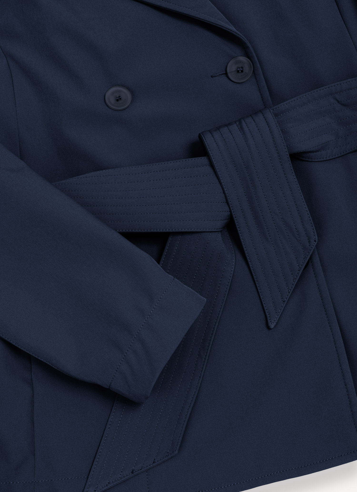 Questo soprabito da donna unisce leleganza intramontabile del trench a un tessuto impermeabile pensato per la primavera. Il collo a revers, la chiusura doppiopetto e la cintura in vita richiamano i dettagli iconici, mentre il tessuto a tre strati con membrana tecnica assicura comfort e protezione. La cintura definisce la silhouette e valorizza la figura, per un look femminile, raffinato e versatile in ogni occasione.