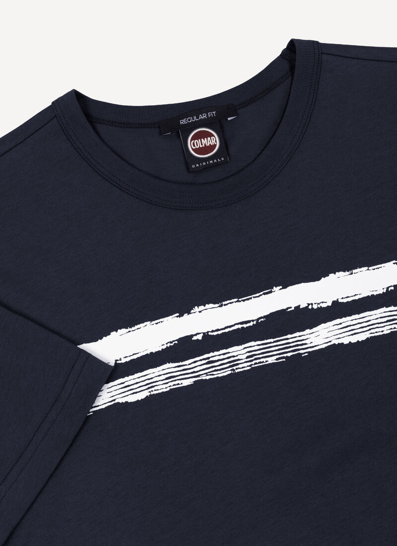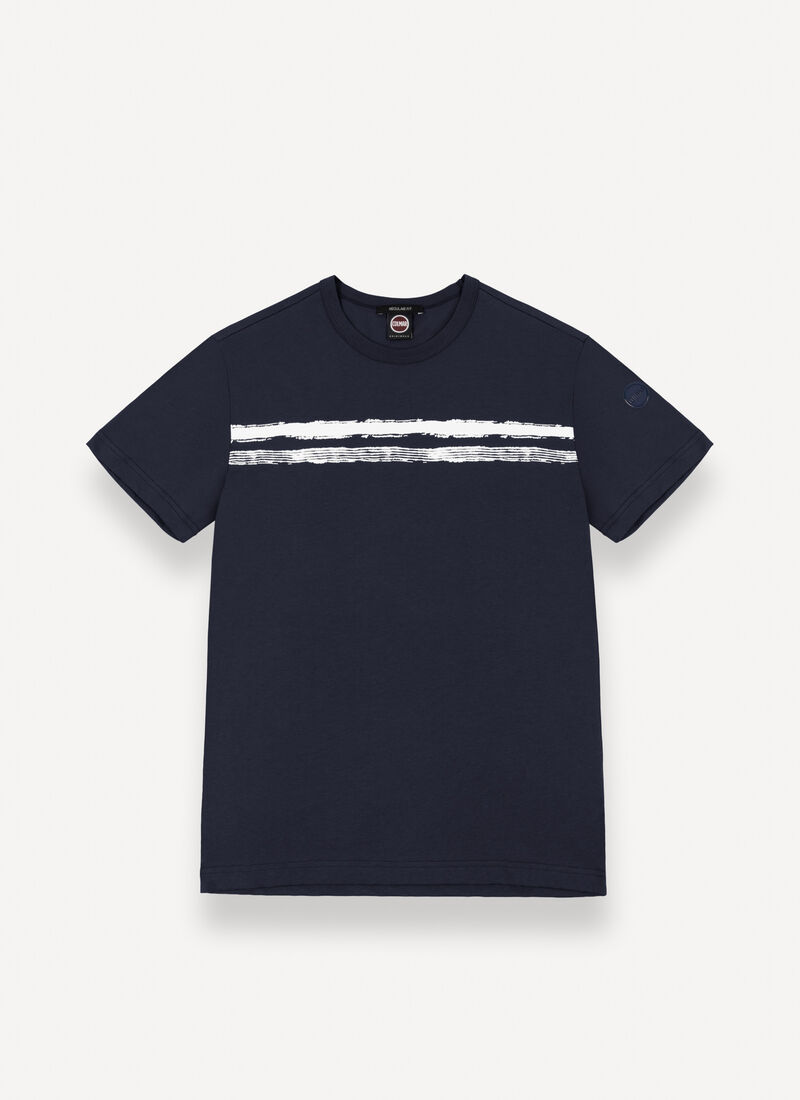 Dal fit classico, questa t-shirt a girocollo da uomo si distingue per la stampa grafica a righe sul petto, che aggiunge carattere e un tocco dinamico. Realizzata in morbido jersey di cotone, garantisce comfort in ogni momento della giornata, ideale per accompagnare dal tempo libero alle attività più dinamiche con stile e praticità. Perfetta anche in abbinamento al costume Mod. 7294 9AW per un look da spiaggia.