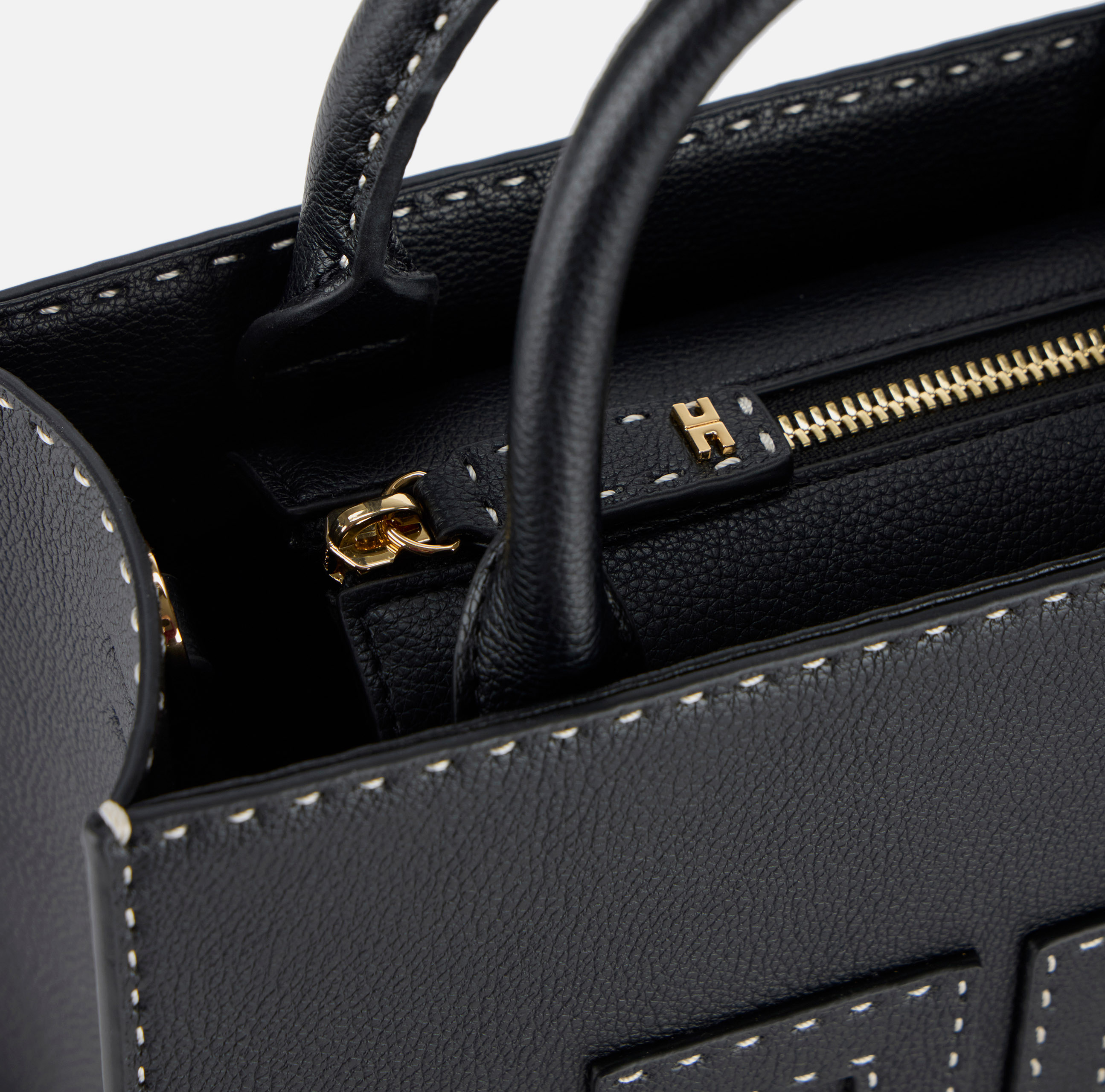 Borsa tote piccola, realizzata in materiale sintetico con effetto pelle bottalata. Ha manico per la portata a mano ed è definita da impunture a contrasto che e patch logo con doppia C.