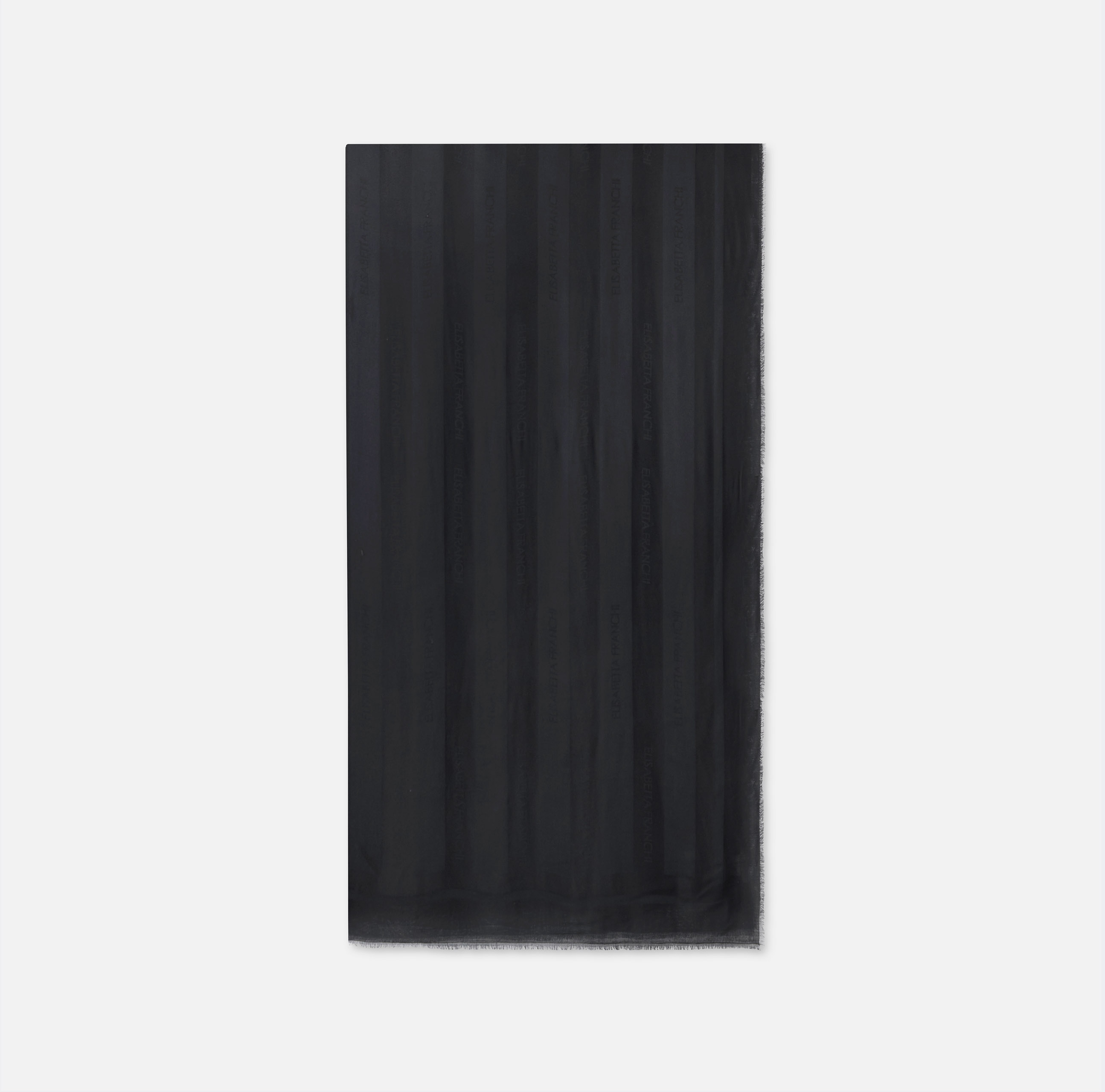 Foulard quadrato in viscosa e modal tinto in capo. Si distingue per il pattern a righe con logo che dona movimento all'accessorio. Cornice in tinta unita con bordi sfrangiati.