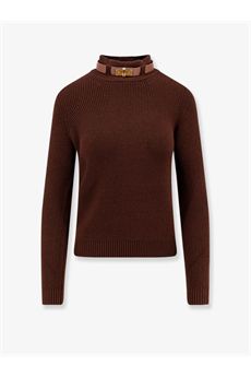 Maglia in misto lana dalla vestibilità regular. Arricchita dal cinturino con girello in metallo dorato, infilato nei passanti e sormontato dal dettaglio ambrato con effetto tartaruga. I bordi sono rifiniti a coste inglesi.