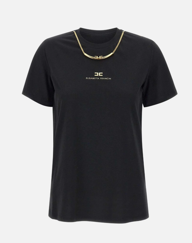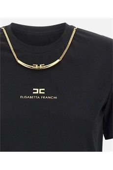 Maglietta a maniche corte in jersey di cotone. È impreziosita dalla collana amovibile con catena, logo centrale ed elementi tubolari in metallo dorato. Il logo a rilievo regala un'ultima nota di luce. Vestibilità regular.