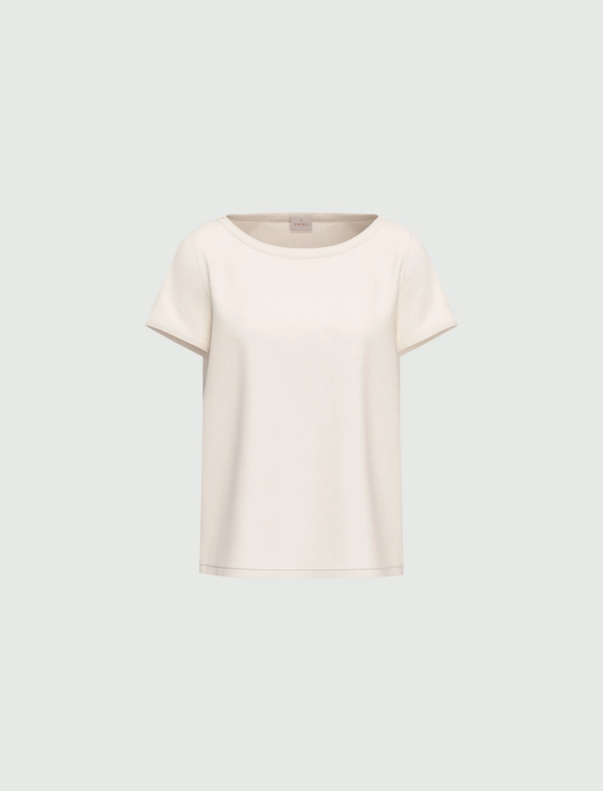 Blusa versatile ed elegante, in crêpe de Chine di misto seta per una nota preziosa sulla pelle. Con manica corta e collo a barchetta ispirato alle marinière anni '80.