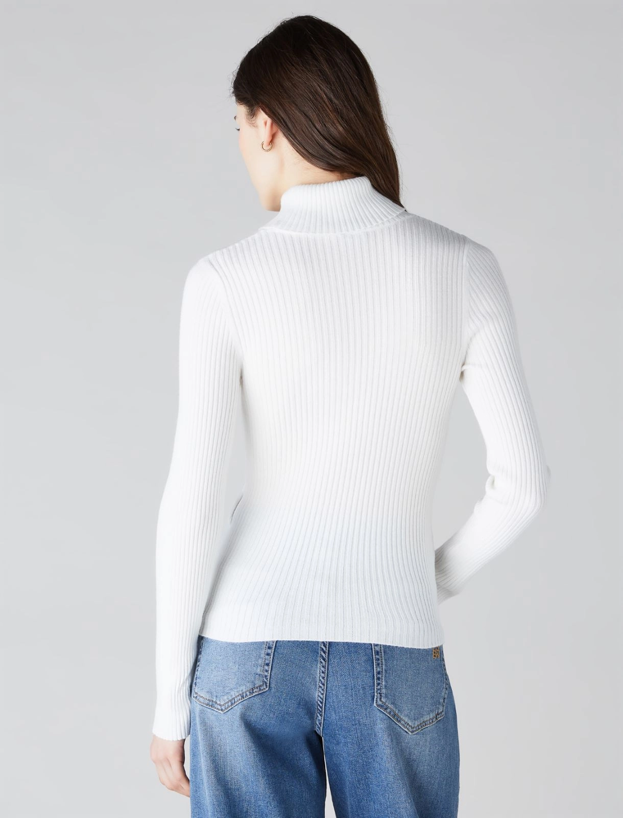 Parti da qui per creare infiniti look: lupetto in maglia di viscosa lavorata a coste, dal fit aderente e sensuale. Definito dal discreto disegno geometrico, è la risposta invernale alla classica t-shirt.