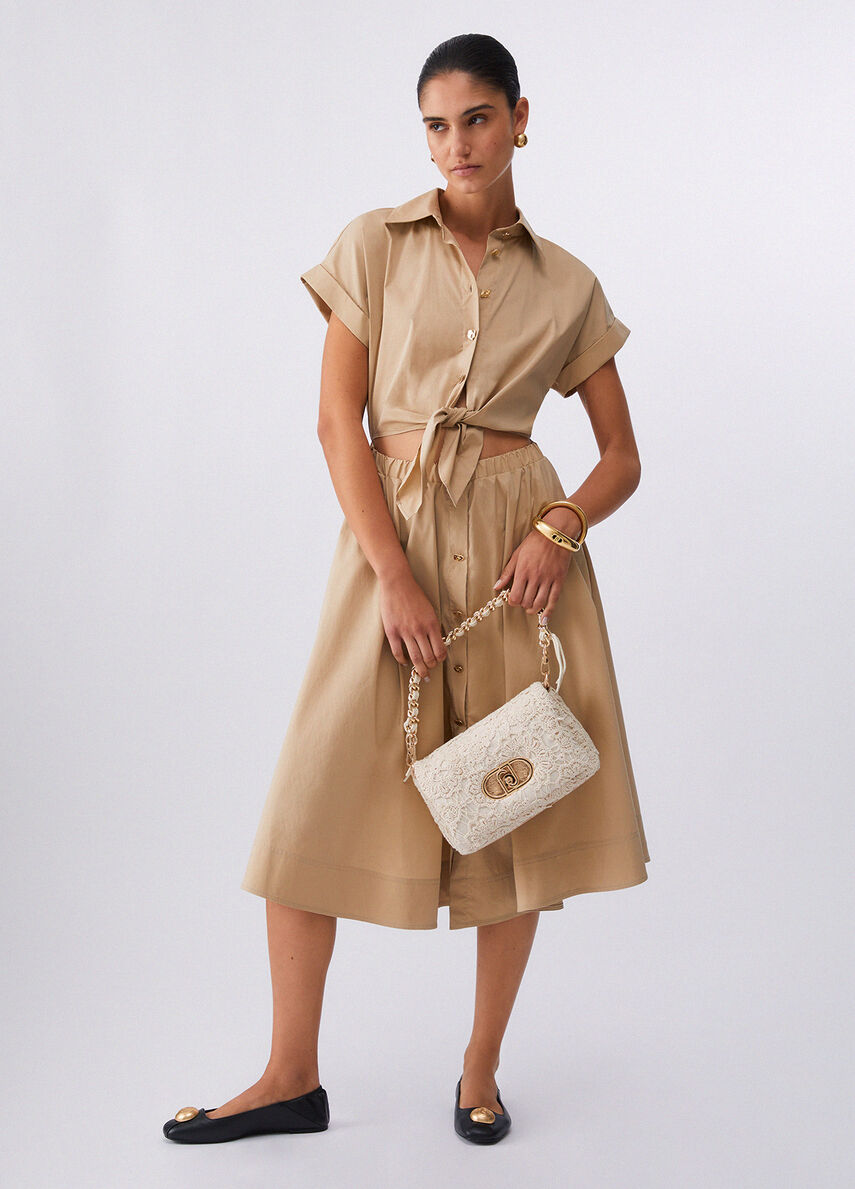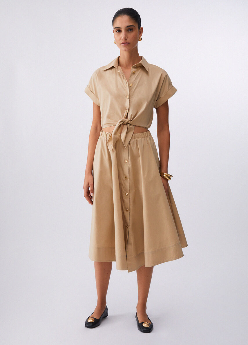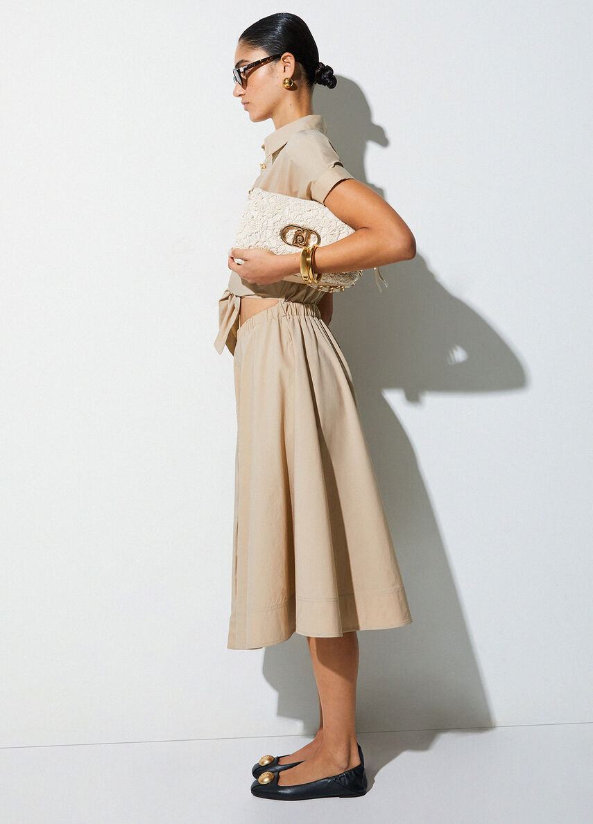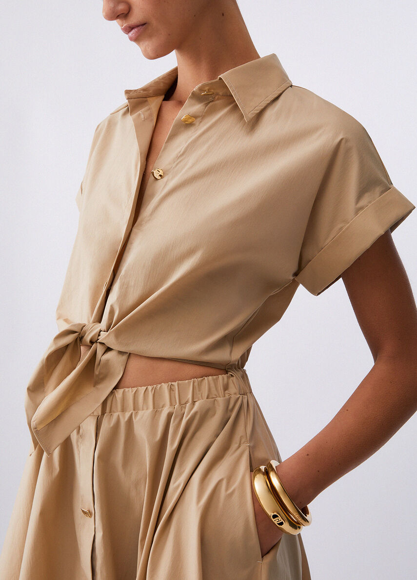Questo chemisier in popeline gioca con un design pulito e volumi leggeri, con un elegante cut-out in vita che aggiunge un twist inatteso, Indossalo con sandali e bijoux dorati per un luminoso look da città.