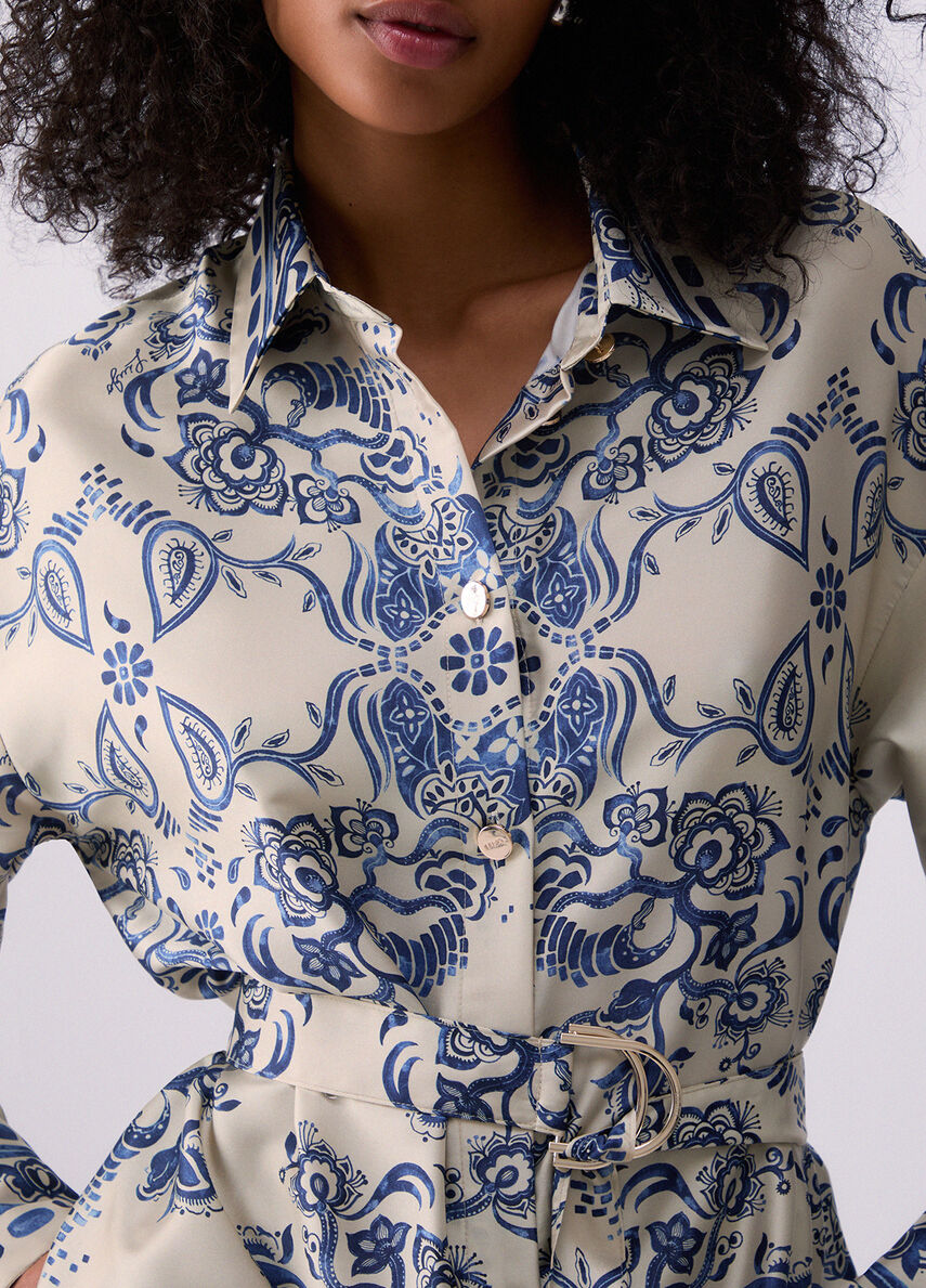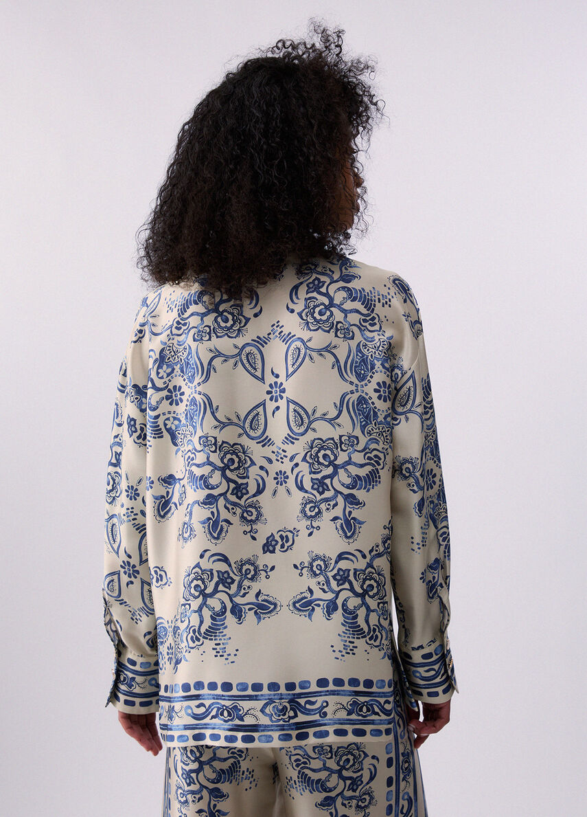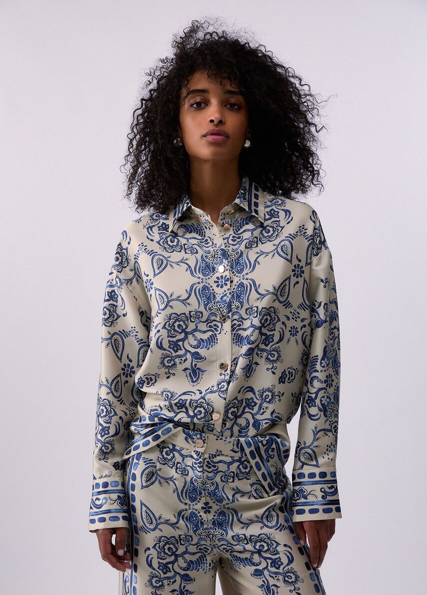 Leleganza della stampa foulard, in versione daily. questa camicia in twill unisce ritmo grafico e comfort per aggiungere carattere ai look da giorno. Provala in coordinato con i pantaloni ton sur ton o indossala in spezzato su jeans e gonne in denim.