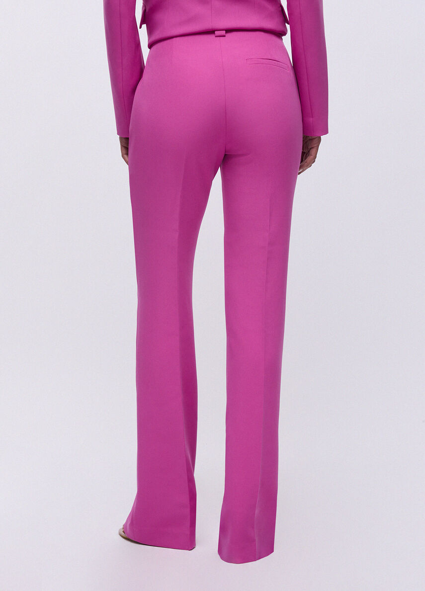 Questi pantaloni flare a vita alta disegnano la figura con un taglio affusolato sulla coscia e unapertura ampia sul fondo, creando movimento a ogni passo. Sceglili con top minimal o blazer doppiopetto per uneleganza che non passa inosservata.