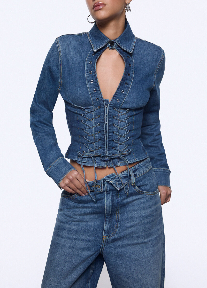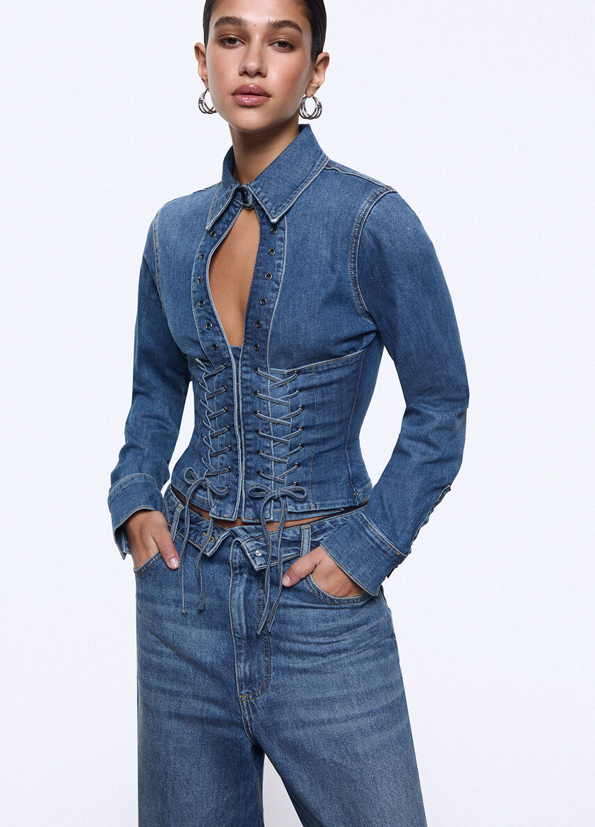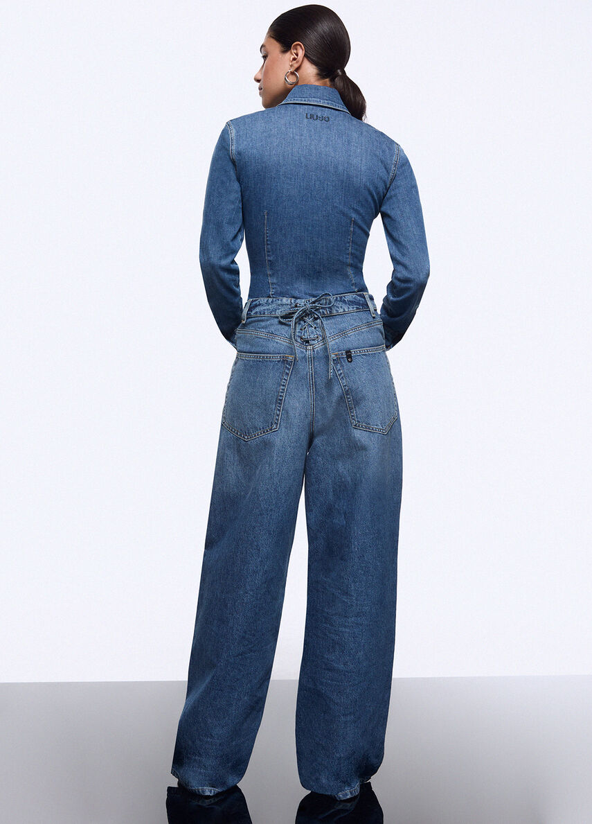 In questi jeans wide-leg della collezione Liu Jo feat. Elodie il denim disegna un silhouette magnetica, tra volumi ampi e dettagli lace-up che trasformano un classico everyday in un capo esclusivo.