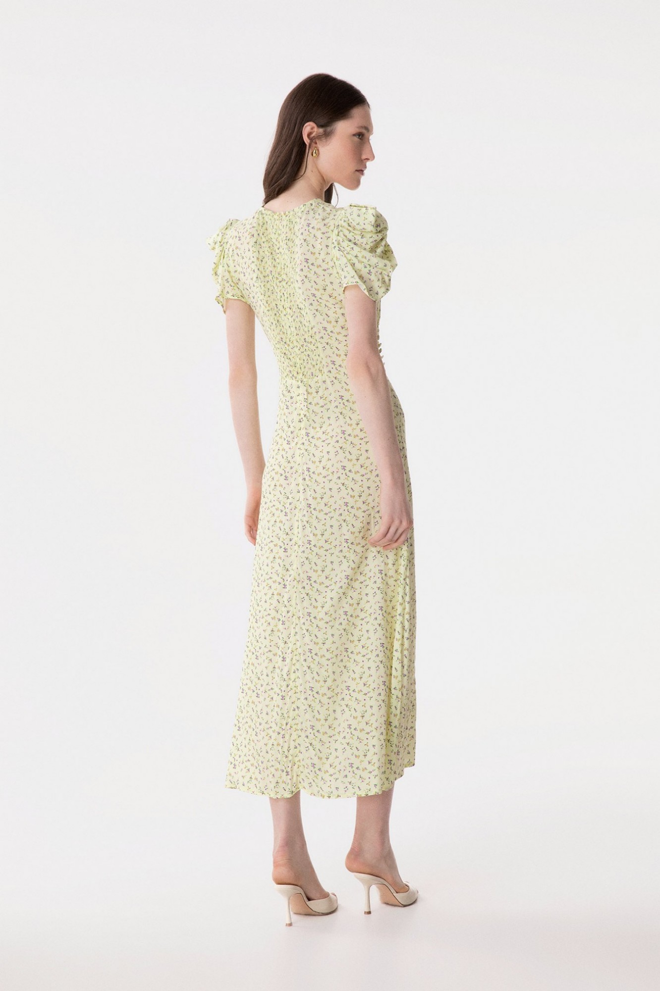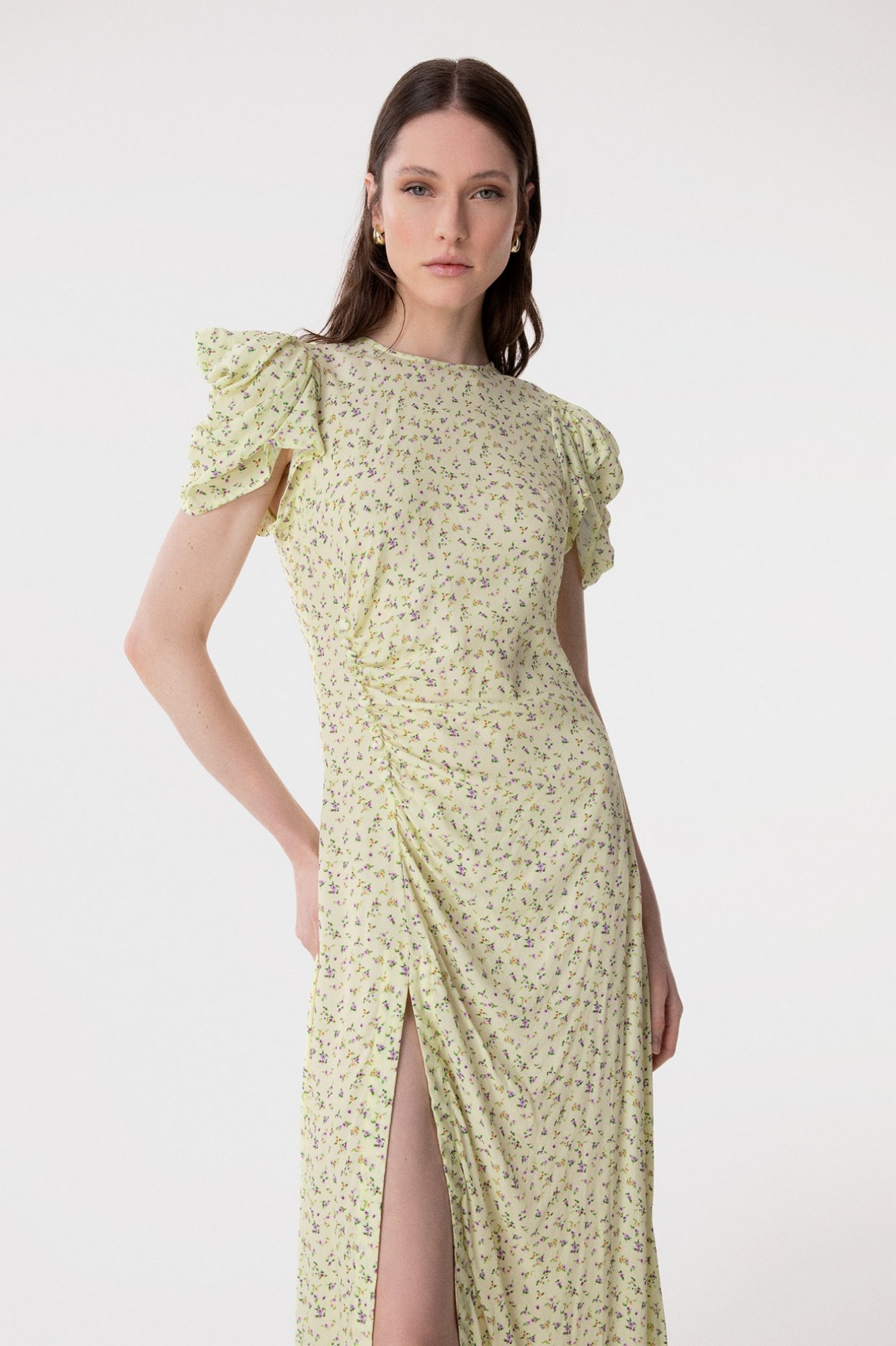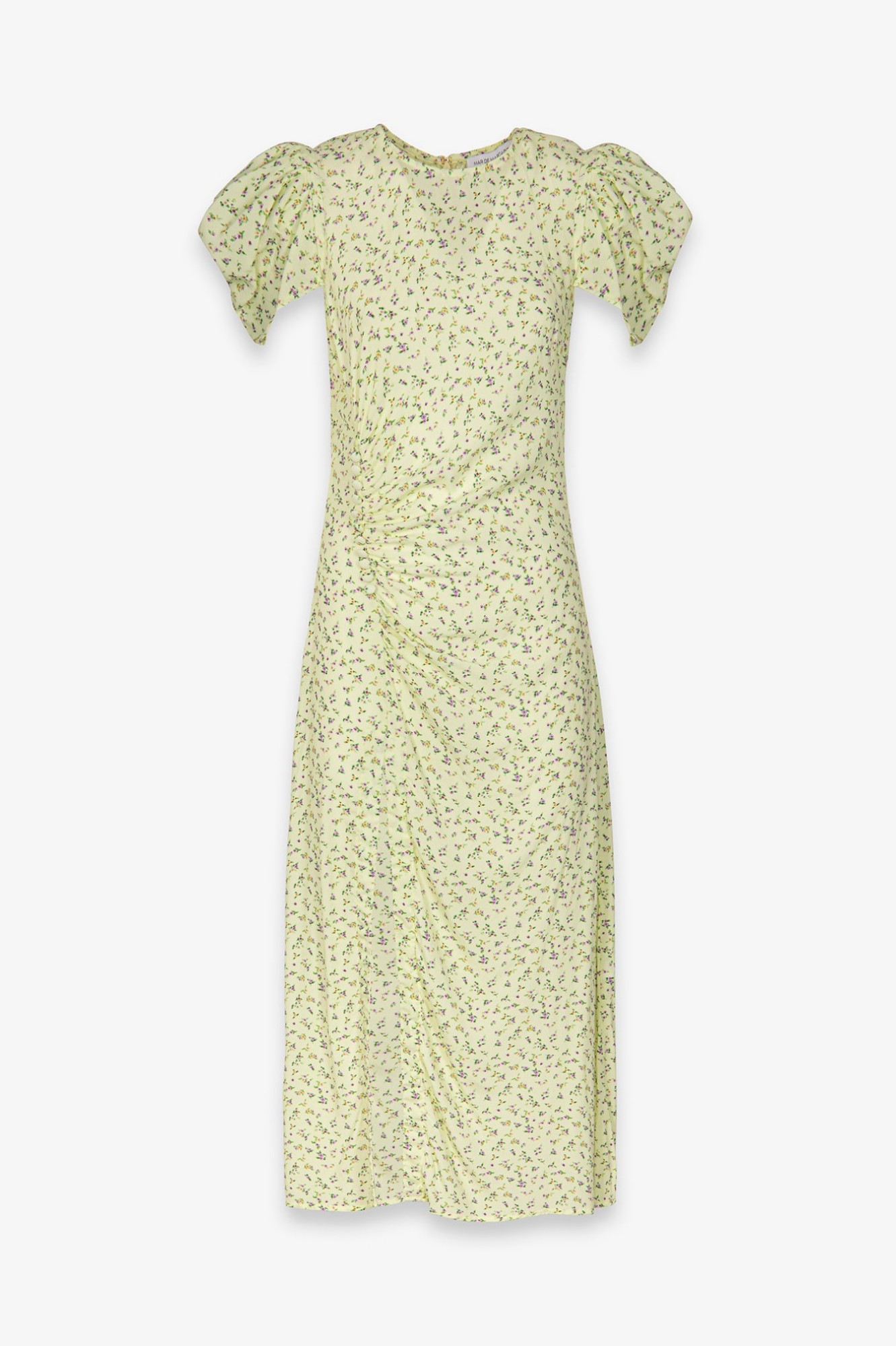 Kristel - Abito Midi Con Drappeggio E Bottoncini In Crepe Con Spacco Laterale Jasmin Giallino Mar de Margaritas