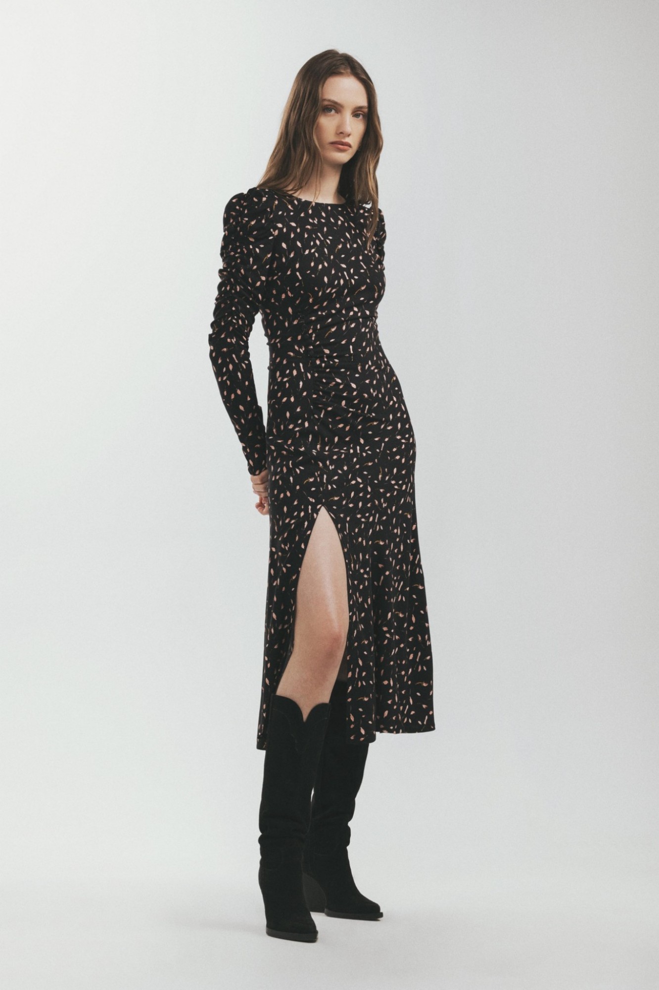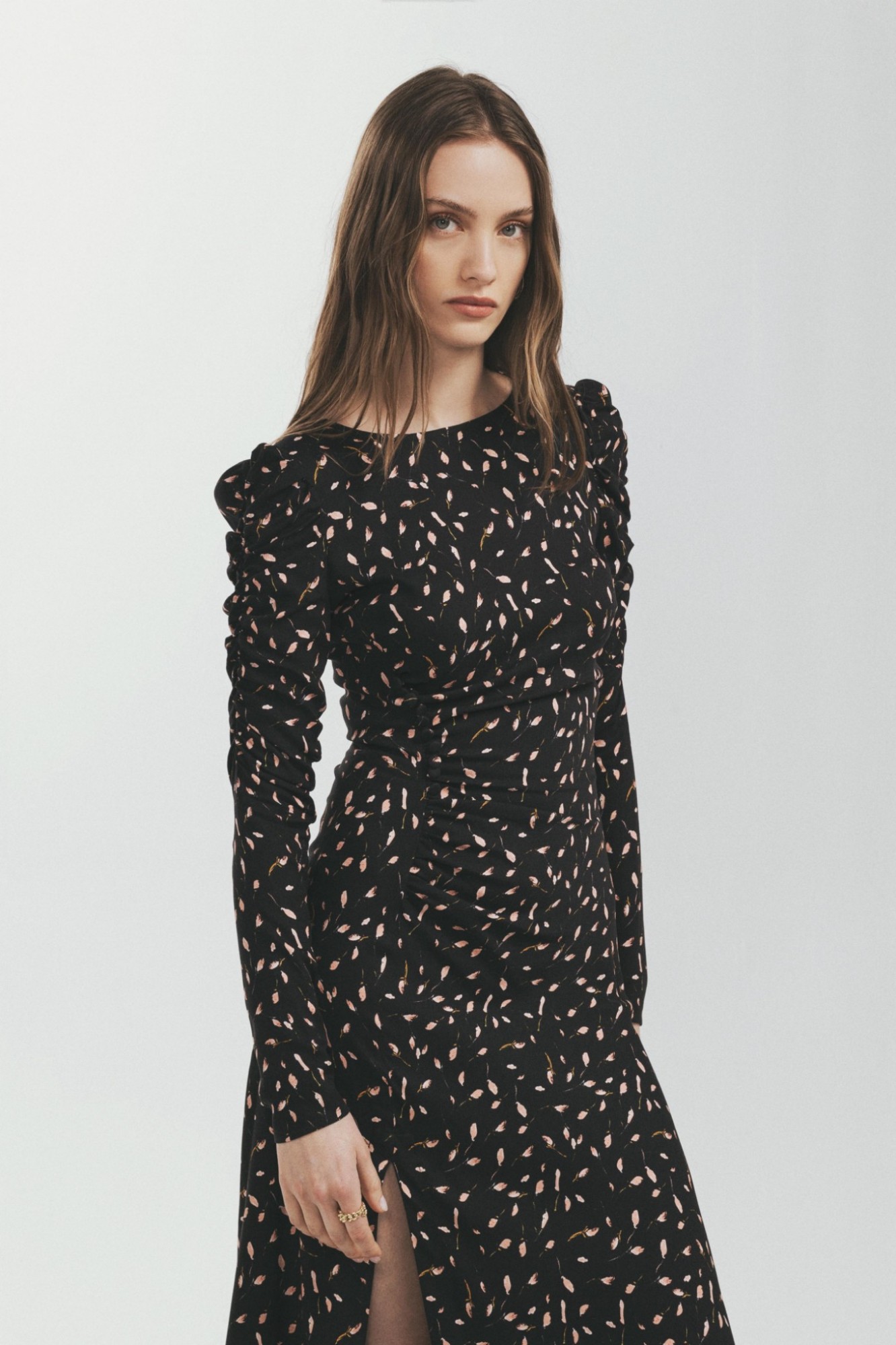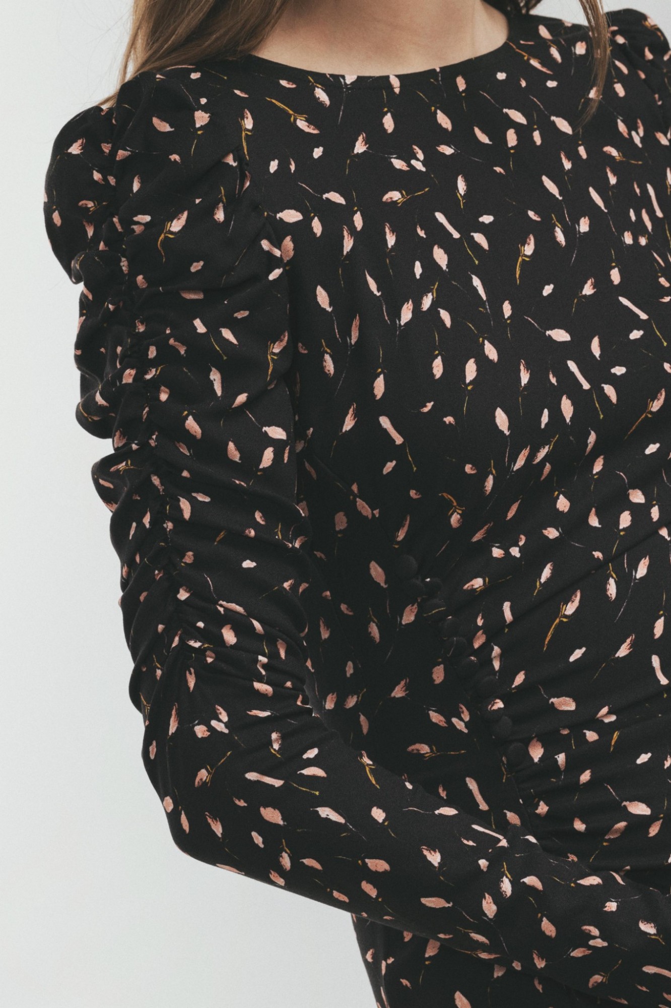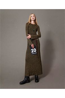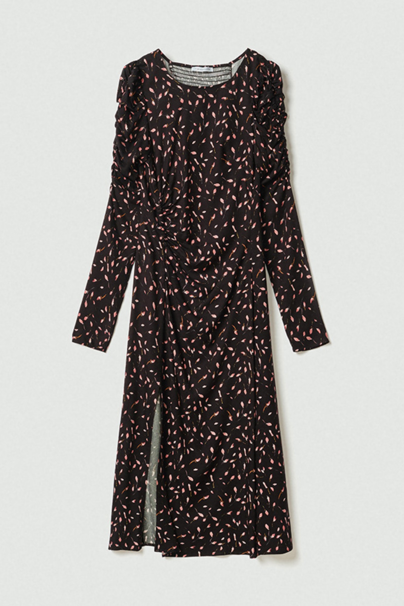 Abito Girocollo In Crepe Midi Con Arricciatura E Bottoncini Sul Davanti Con Punto Smock Sul Retro