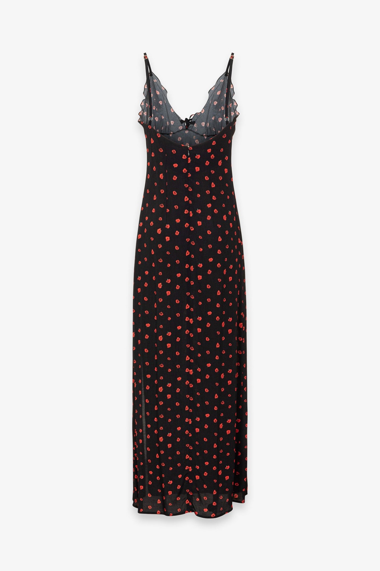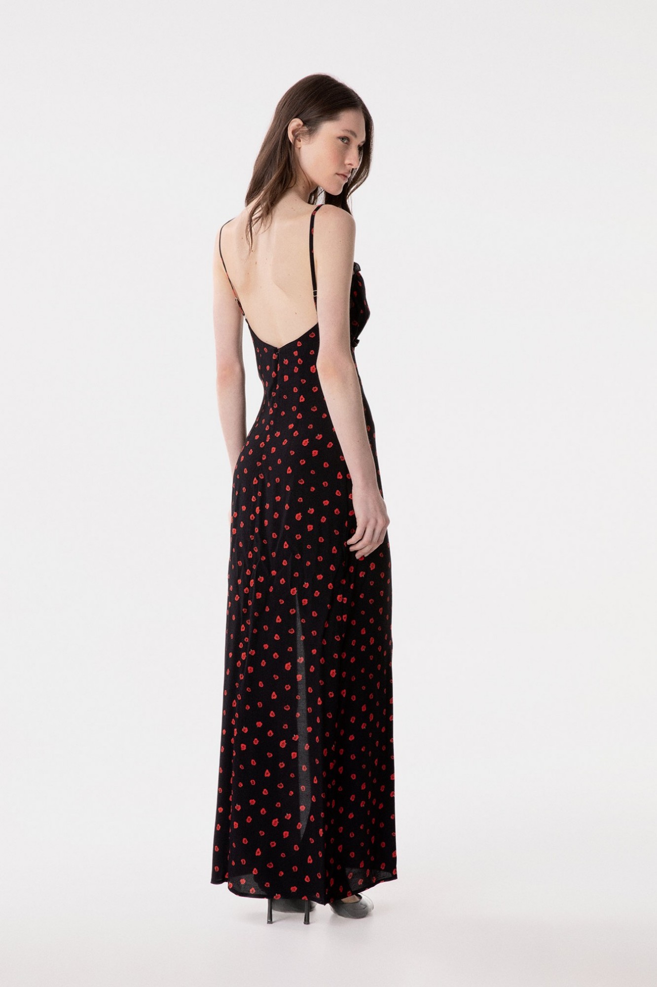 Riley - Abito Lungo Dritto In Crepe Con Arricciature Sul Seno Rose Nero Mar de Margaritas