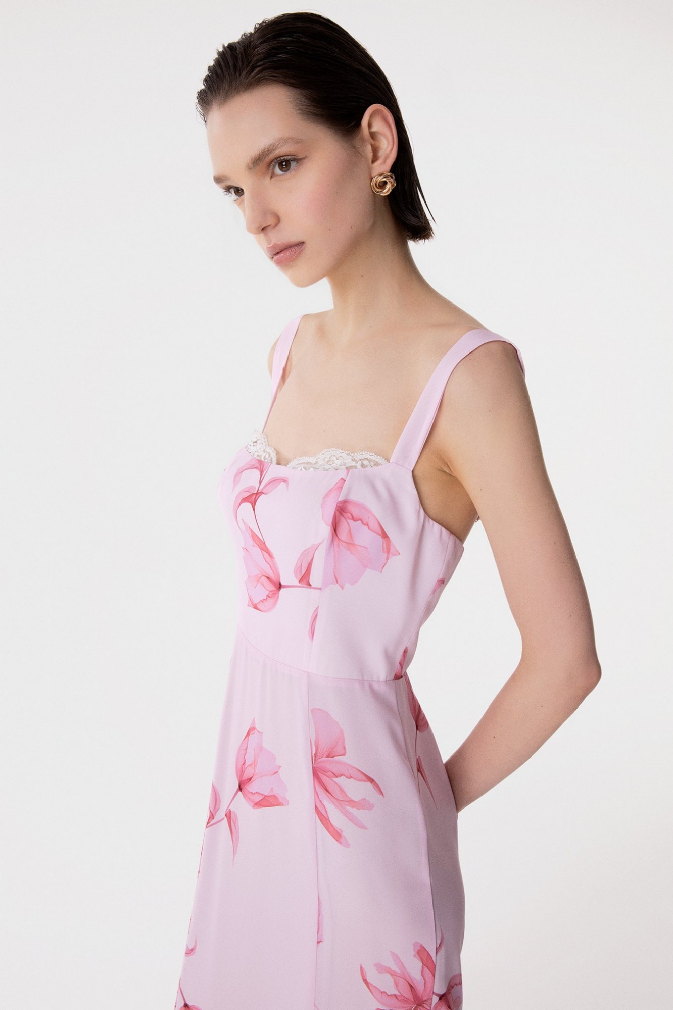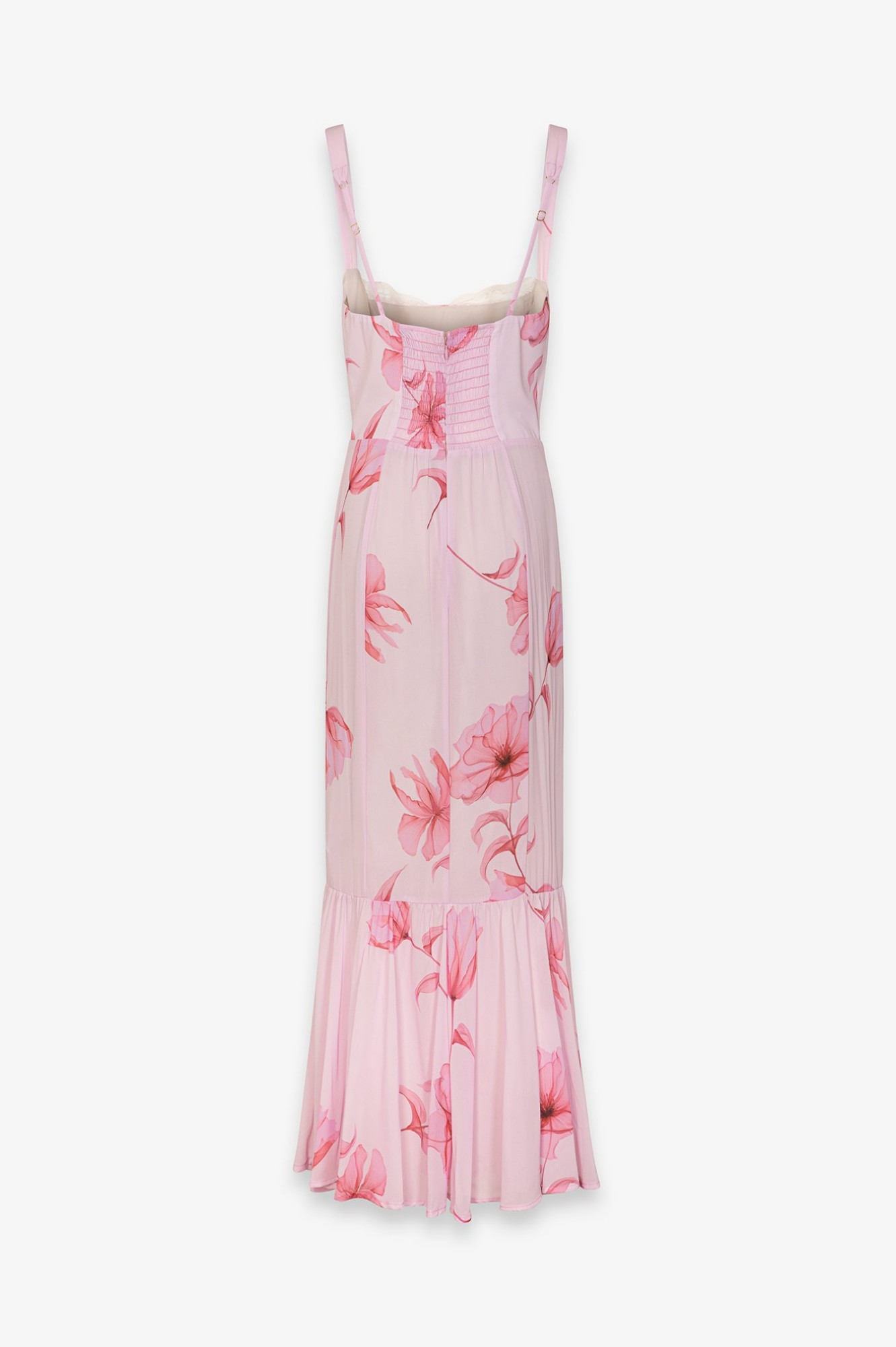 Denise - Abito Lungo In Georgette Con Spallina Larga, Scollo A Cuore E Fondo Balza Arricciata Lotus Rosa Mar de Margaritas