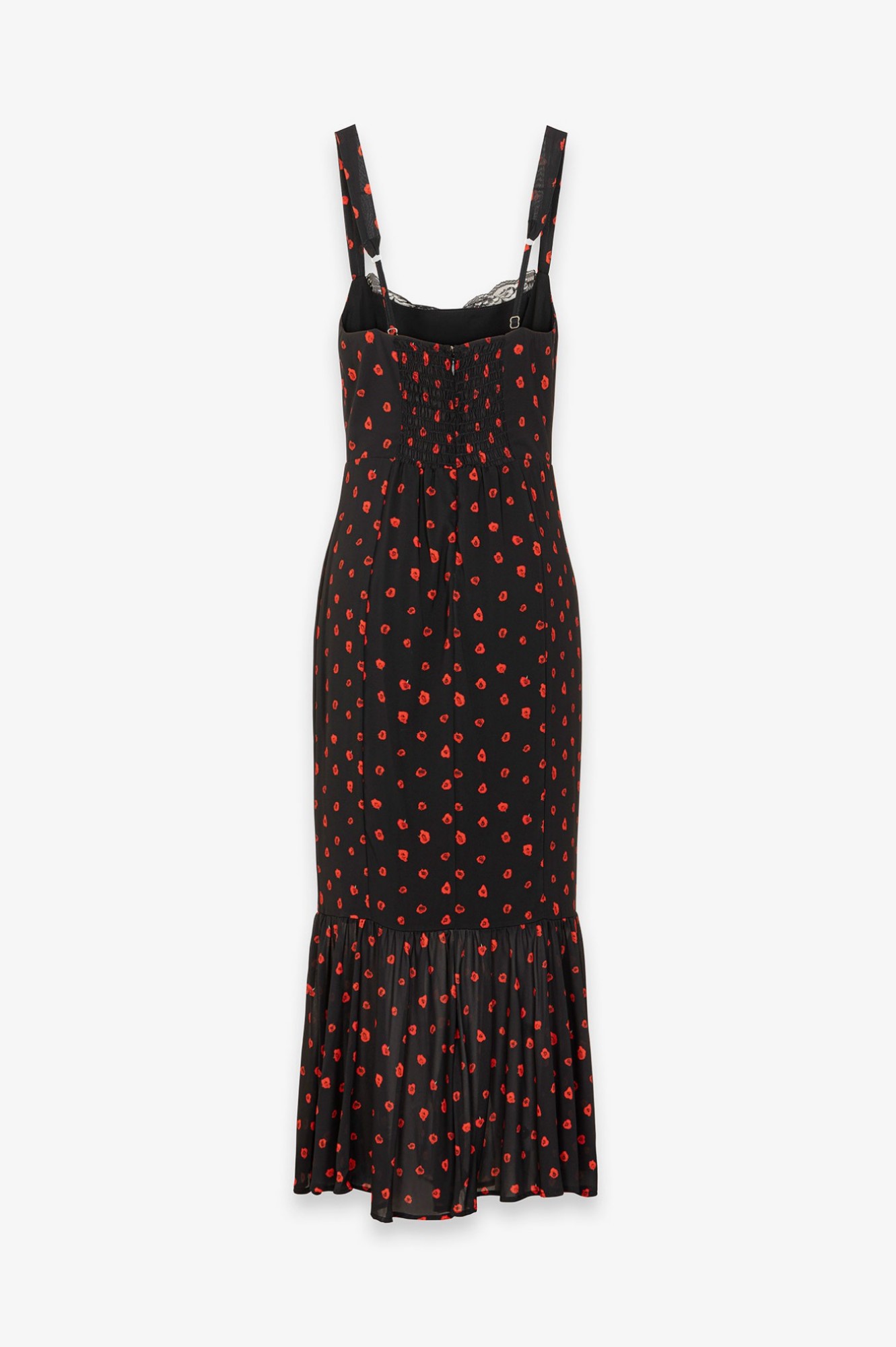 Denise - Abito Lungo In Georgette Con Spallina Larga, Scollo A Cuore E Fondo Balza Arricciata