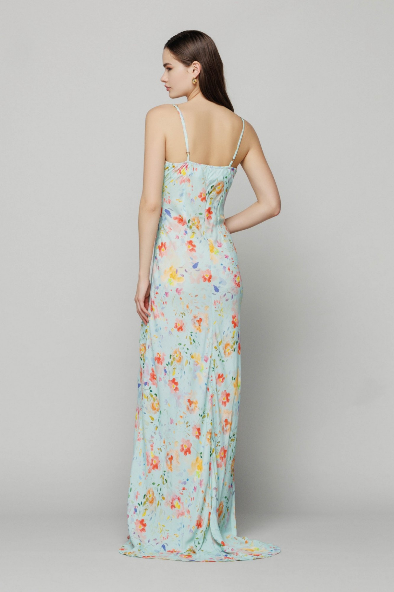 Kelly - abito lungo con spacco laterale in crêpe. Spalline sottili regolabili e scollo morbido