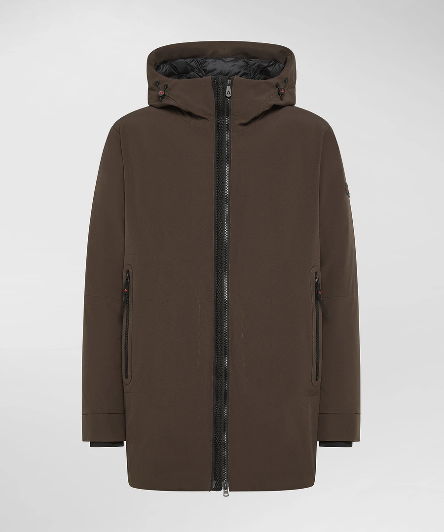 Overcoat in tela di poliestere stretch, accoppiata con un jersey di poliestere soffice e caldo, grazie alla finezza dei filati utilizzati. Limbottitura in Thermoplume, prima vera alternativa sintetica al piumino doca, garantisce calore, leggerezza, morbidezza e comprimibilità, mantenendo al contempo unottima resistenza allacqua. Parte della linea Color in cui i disegni geometrici prendono vita ed esaltano i piumini della sezione, un concept giocoso e ironico che reinterpreta il capospalla in modo creativo ed easy. Il design essenziale e funzionale è completato da polsini antivento in maglina nera, cappuccio con tiranti regolabili, doppia zip centrale nera pensata per modellare il capo a seconda delle tue esigenze e tasche laterali a filetto. Il trattamento idrorepellente PFC Free protegge dalla pioggia leggera senza impiego di sostanze dannose per lambiente. Un capo versatile, studiato in ogni minimo dettaglio per vivere la stagione fredda con il massimo del comfort senza rinunciare allo stile.
