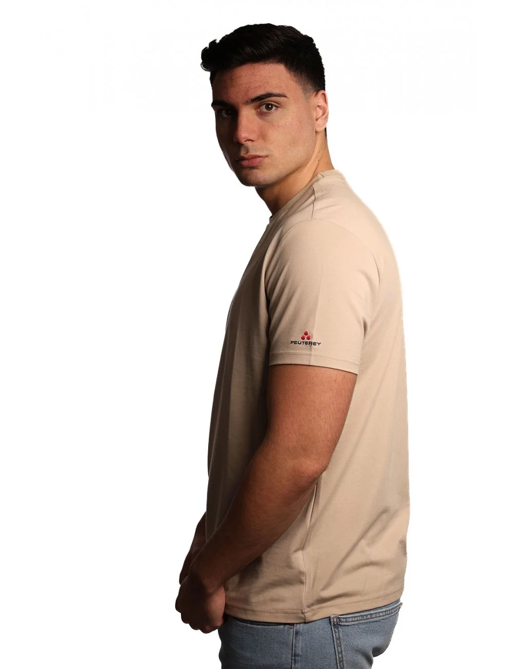 T-shirt in piquet stretch di cotone e seta, tinto in pezza, con logo ricamato sulla manica sinistra. Realizzata in un tessuto morbido, leggero e traspirante, è ideale per affrontare per la bella stagione con stile e comfort. Un modello versatile e moderno, perfetto come base per ogni guardaroba estivo, grazie alle sue infinite possibilità di abbinamento, per uno stile sempre impeccabile.
