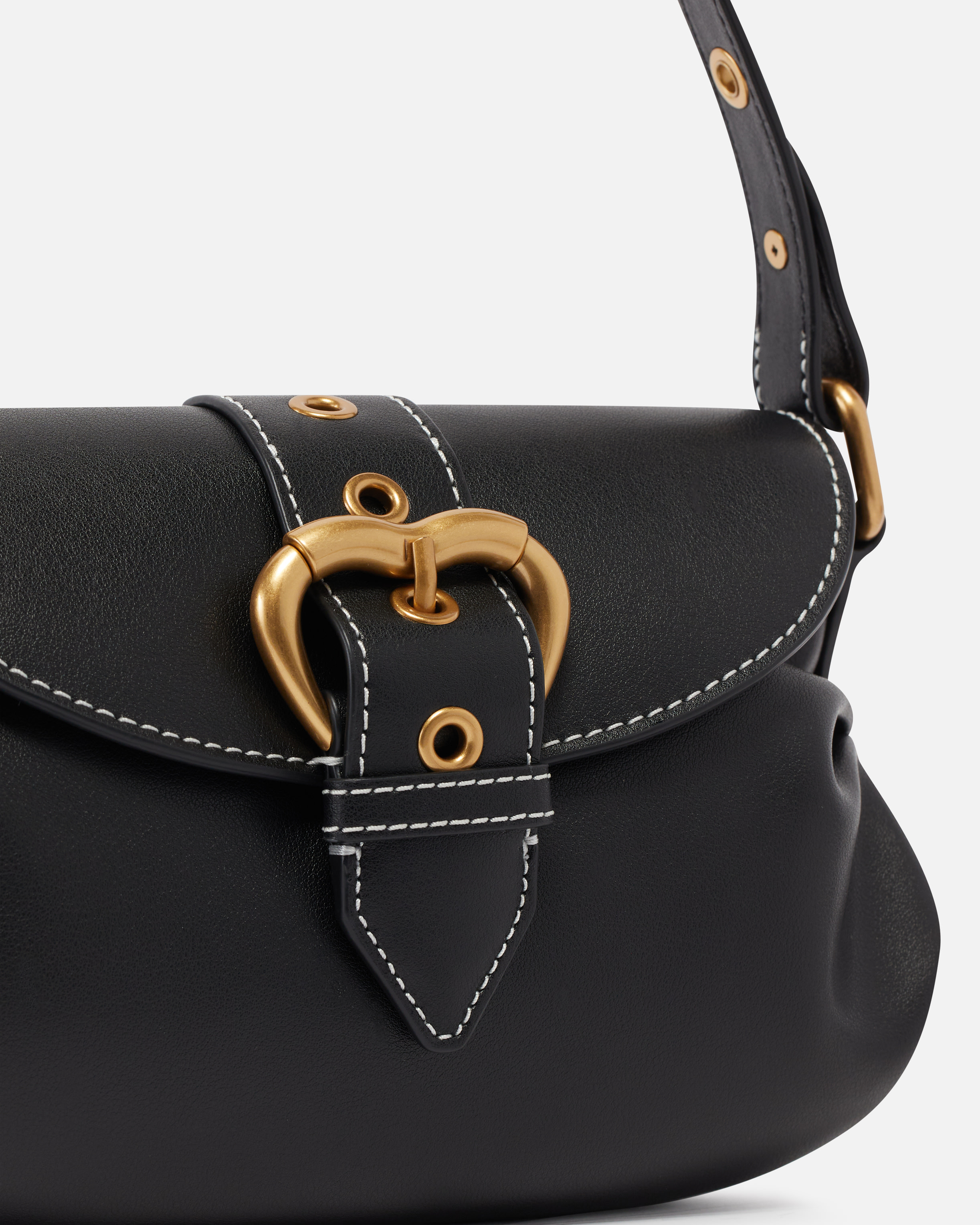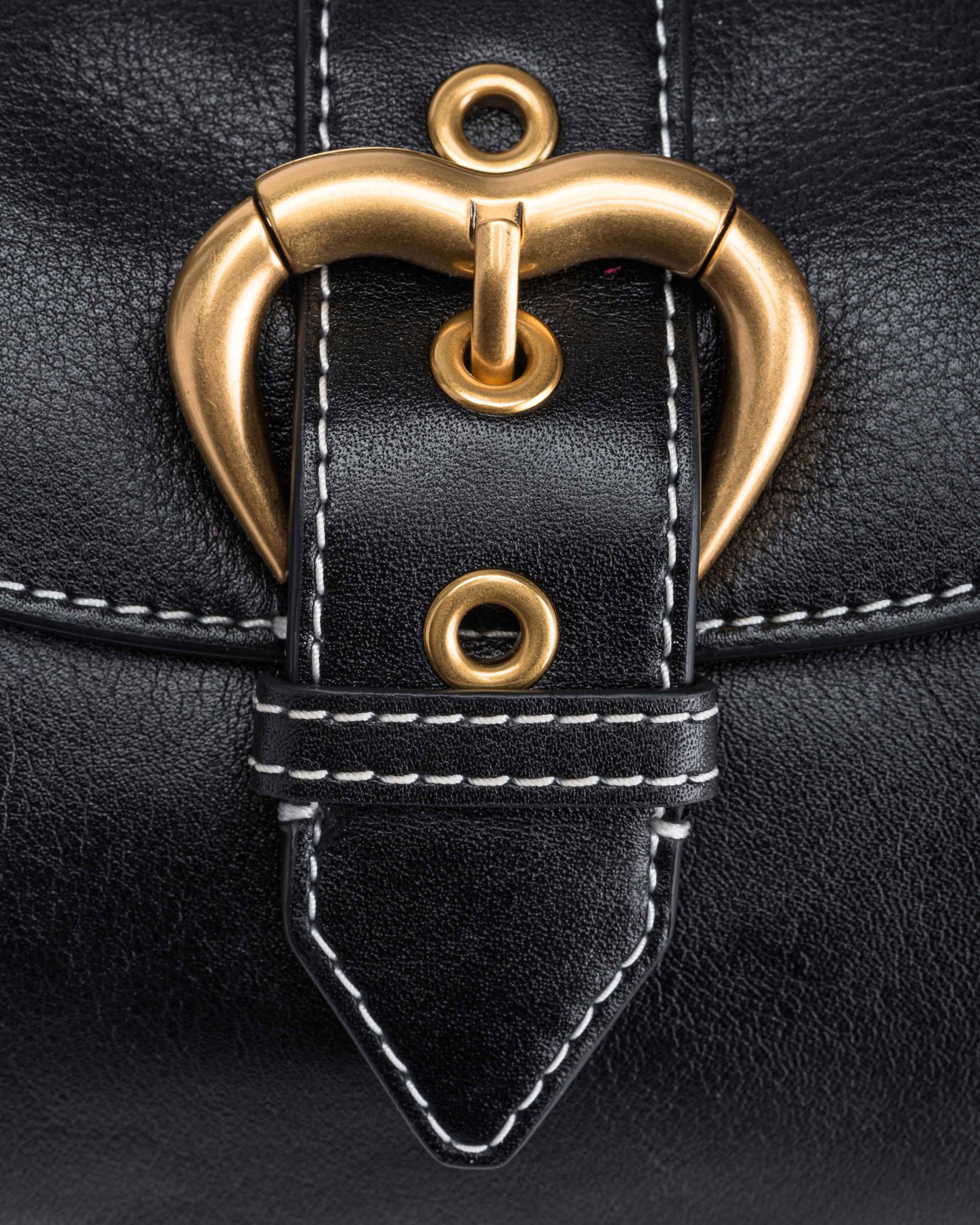 Borsa a spalla dalle piccole dimensioni Jolene Bag in morbida pelle crystal caratterizzata da fibbia a rullo in metallo sagomata a forma di cuore. La tracolla regolabile per la portata a spalla e il baccello sono realizzati in pelle e impreziositi con occhielli in metallo. L'interno della borsa è foderato in microfibra scamosciata e include una pratica tasca chiusa con zip. La borsa è completa di una seconda tracolla a catena metallica, rimovibile tramite piccoli moschettoni. Attiva la tua borsa PINKO: verifica l'autenticità del tuo prodotto e accedi all'esperienza personalizzata avvicinando il tuo smartphone al ricamo Love Birds che trovi sul retro della borsa!