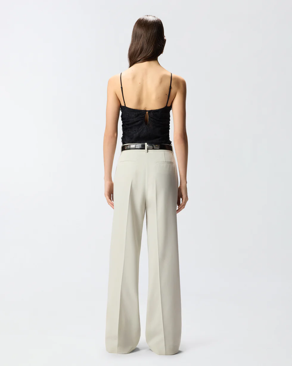 Top senza maniche dalla silhouette aderente, caratterizzato da sottili spalline regolabili d'ispirazione lingerie, scollo a V frontale e chiusura posteriore con due bottoni in tono che creano piccoli cut-out. La protagonista indiscussa del modello è però la lavorazione: un leggerissimo pizzo che decora l'intera superficie con sofisticati motivi floreali e che profila il bordo esterno dello scollo sul davanti. Il capo, foderato per garantire un indosso ancora più confortevole, presenta inoltre delicati drappeggi per esaltare la figura e uno scollo dritto sul retro che lascia la parte alta della schiena scoperta: indossalo con una minigonna per un look più audace, oppure abbinalo a un paio di pantaloni e un blazer per un outfit raffinato ma con un pizzico di sensualità.