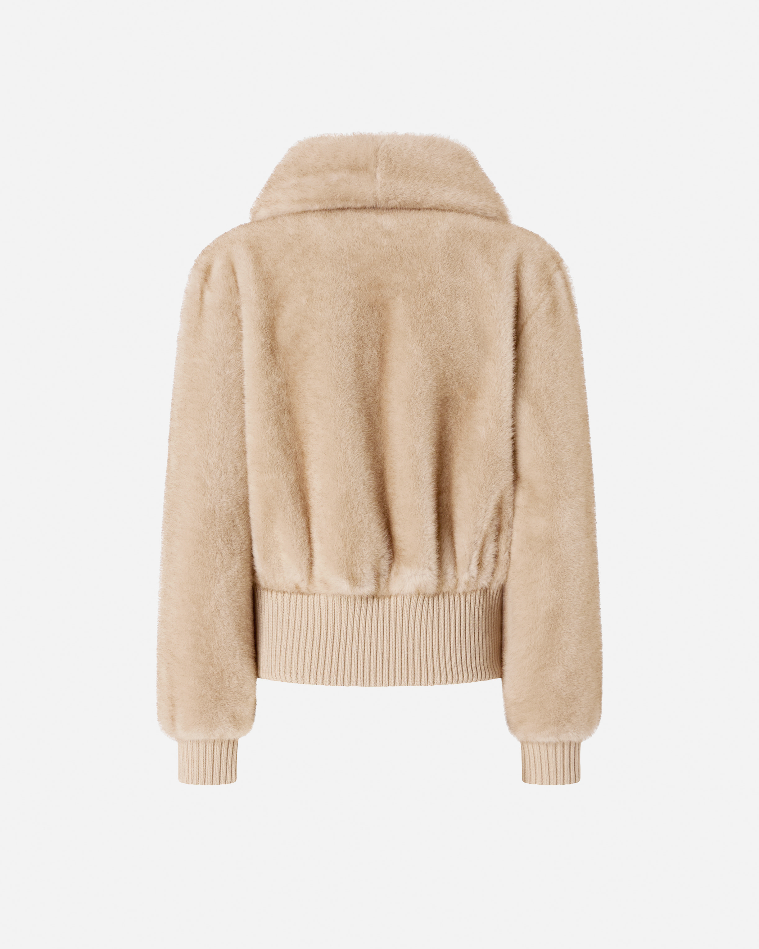 Bomber corto caratterizzato da un avvolgente collo rialzato e da fondo e polsini in confortevole maglia lavorata a costine. Il capo è realizzato in morbido tessuto Aspen dall'effetto pelliccia, particolarmente piacevole al tatto. La cura per i dettagli tipica delle creazioni PINKO è ben visibile anche nelle rifiniture in morbida nappa che profilano la chiusura frontale con zip a doppio cursore. Modello foderato. Affronta le temperature più rigide con questo capo pronto a regalarti un morbido abbraccio.