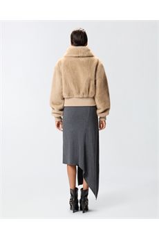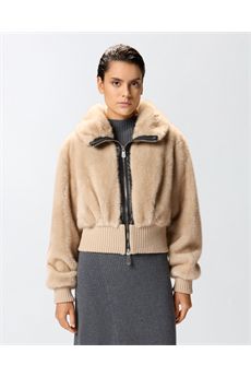 Bomber corto caratterizzato da un avvolgente collo rialzato e da fondo e polsini in confortevole maglia lavorata a costine. Il capo è realizzato in morbido tessuto Aspen dall'effetto pelliccia, particolarmente piacevole al tatto. La cura per i dettagli tipica delle creazioni PINKO è ben visibile anche nelle rifiniture in morbida nappa che profilano la chiusura frontale con zip a doppio cursore. Modello foderato. Affronta le temperature più rigide con questo capo pronto a regalarti un morbido abbraccio.