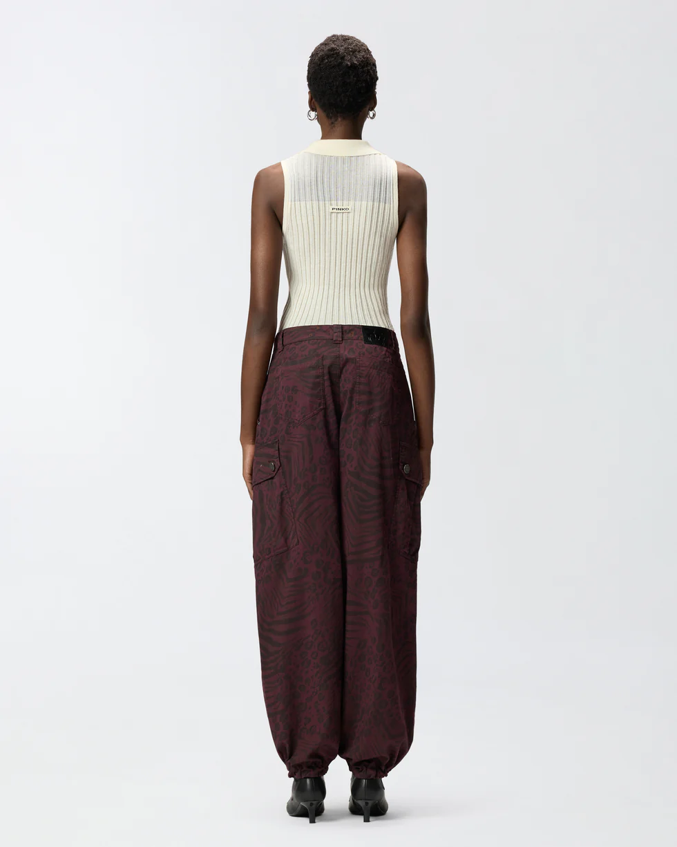 Canotta lavorata a coste e realizzata in morbida e leggera maglia di misto lana, seta e cashmere, con inserti intarsiati in misto cotone dall'elegante effetto trasparente. Il modello, dalla vestibilità aderente, presenta un colletto a punta stile polo e uno scollo a V con abbottonatura serafino, mentre il tocco finale è dato dall'etichetta con logo lettering PINKO in jacquard sul retro. Un capo contemporaneo e allo stesso tempo lussuoso, pronto a diventare un asso nella manica per i tuoi look quotidiani.
