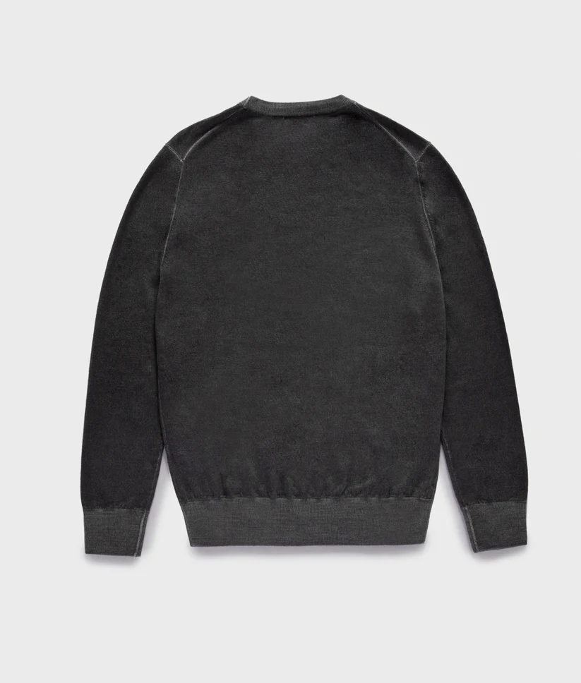 Maglione da uomo girocollo in 100% lana Merino, leggero e caldo. Il trattamento Washed dona morbidezza e un look vissuto, mentre fondo e polsini a costine garantiscono comfort e aderenza. Patch logo sul petto per un tocco autentico. Essenziale, versatile, contemporaneo.