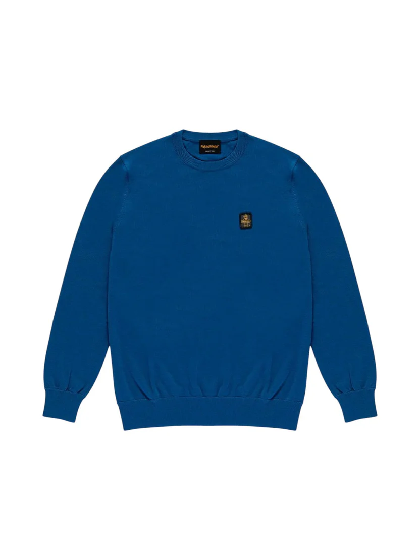 Maglione da uomo girocollo in 100% lana Merino, leggero e caldo. Il trattamento Washed dona morbidezza e un look vissuto, mentre fondo e polsini a costine garantiscono comfort e aderenza. Patch logo sul petto per un tocco autentico. Essenziale, versatile, contemporaneo.