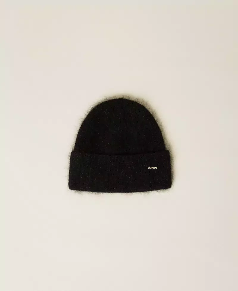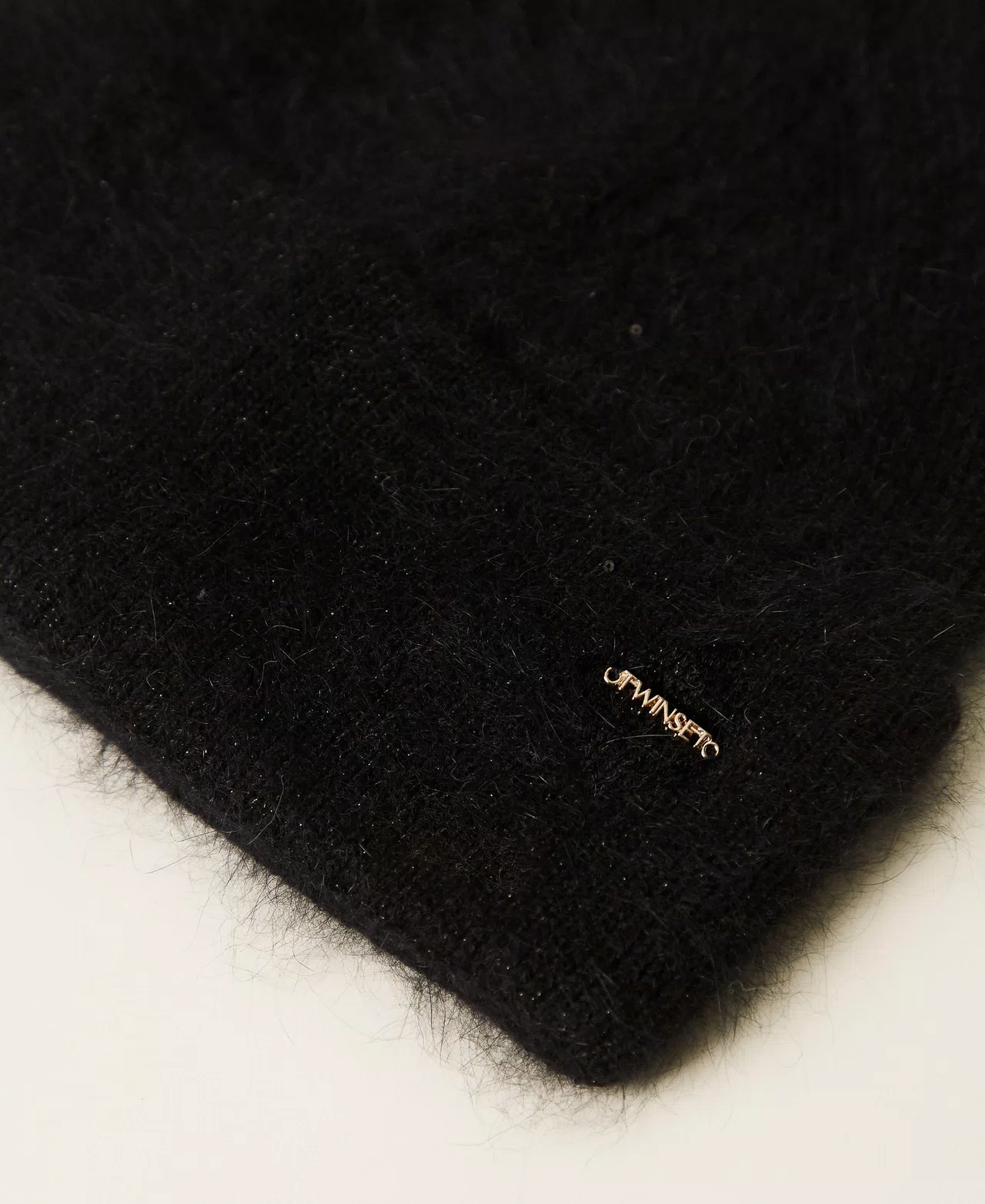 Berretto in maglia di misto alpaca con lavorazione rasata, filo di paillettes e risvolto alto.