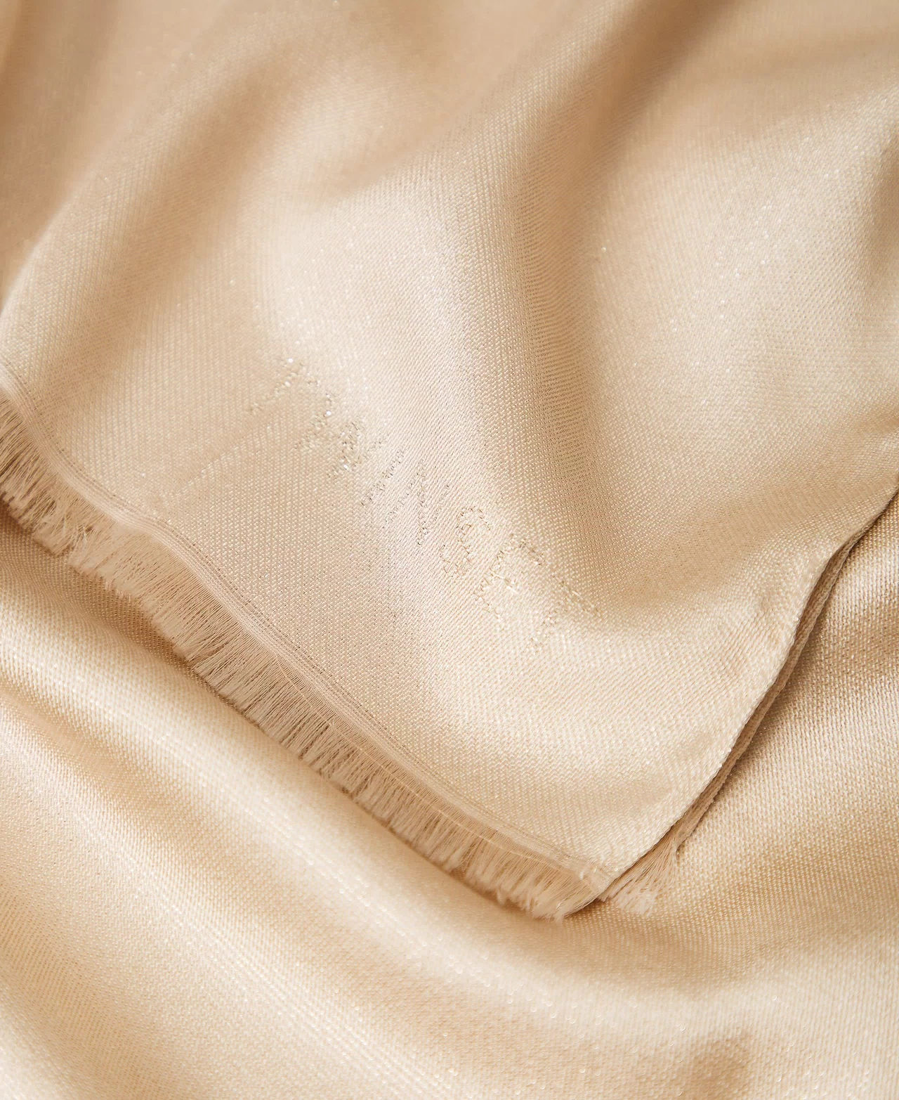 Stola in tessuto a tinta unita con lurex e logo jacquard piazzato, profili sfrangiati.