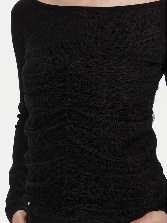 Maglia drappeggiata con scollo profondo e maniche lunghe.