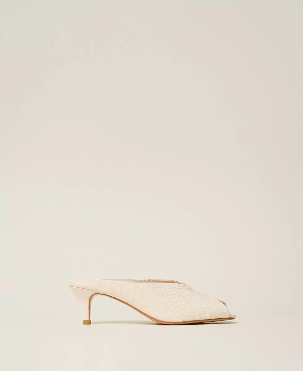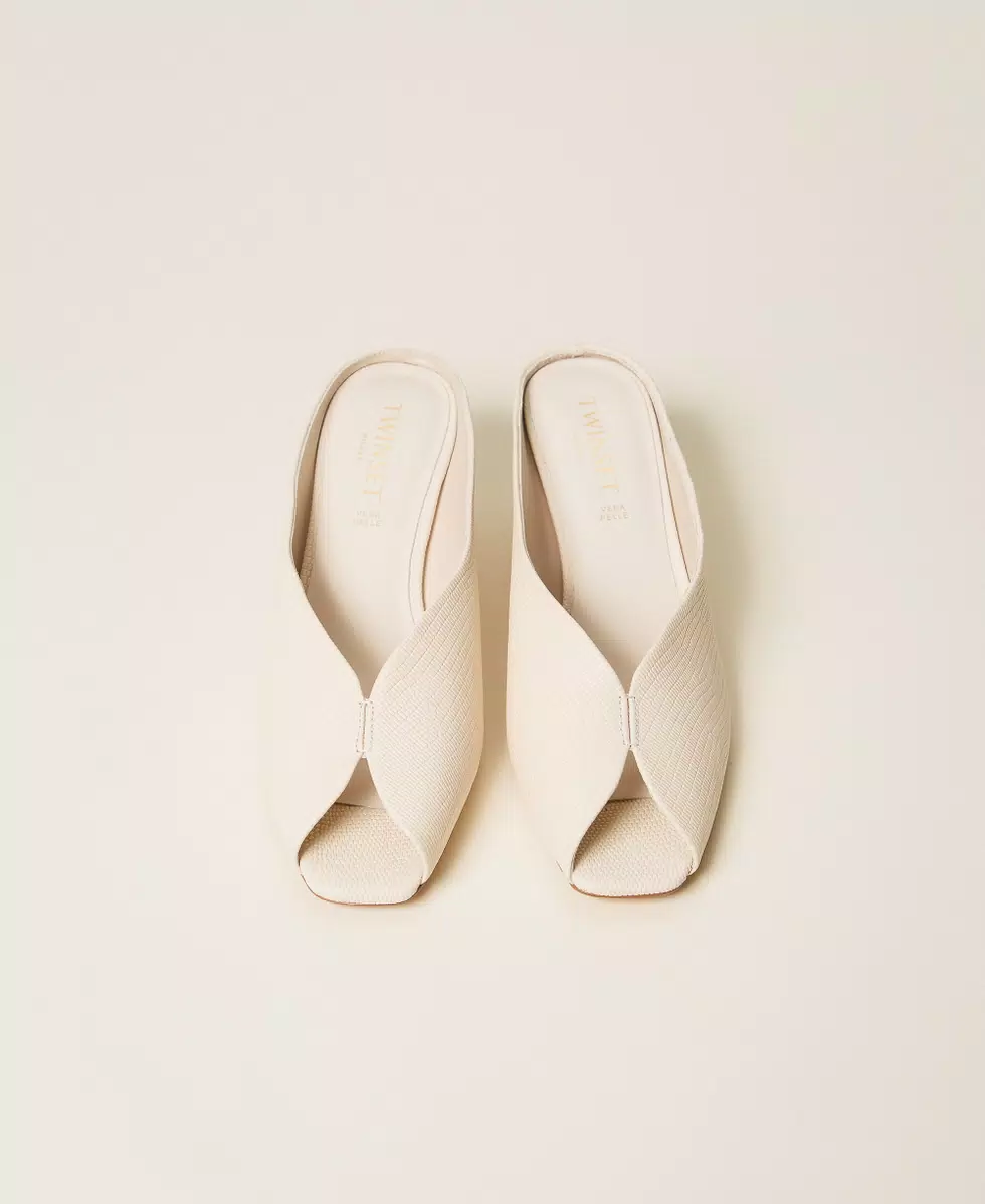 Scarpe mules in pelle con stampa tejus, costruzione open toe, tacco fasciato in pelle, fondo in tunit.