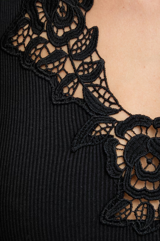 Top a canotta in cotone con scollatura a V rifinita da patch pizzo intarsiato e smerlato, linea fitted.